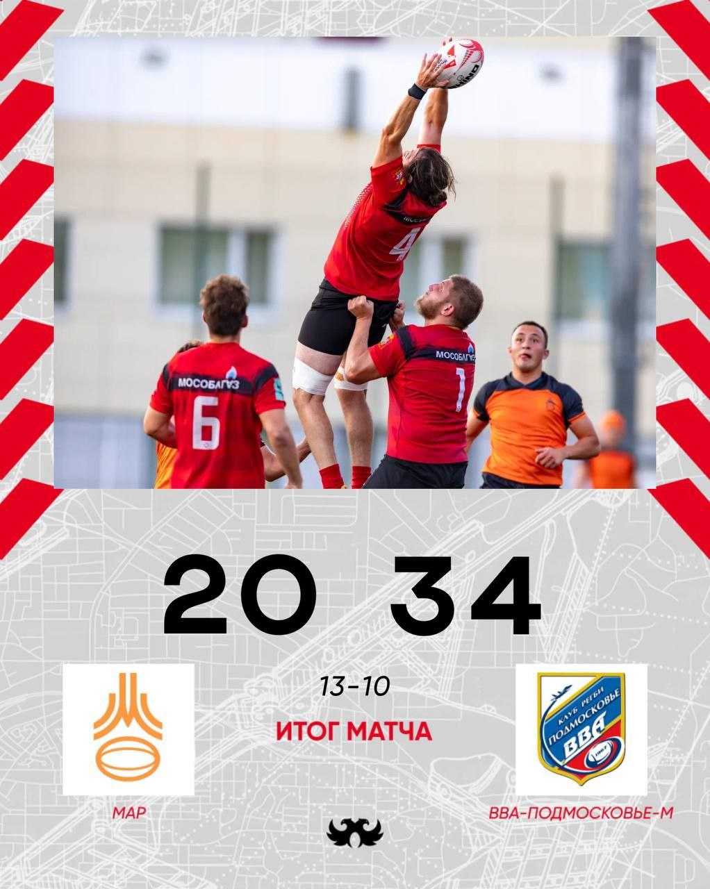Итог матча: МАР (13) 20:34 (10) «ВВА-Подмосковье-м»