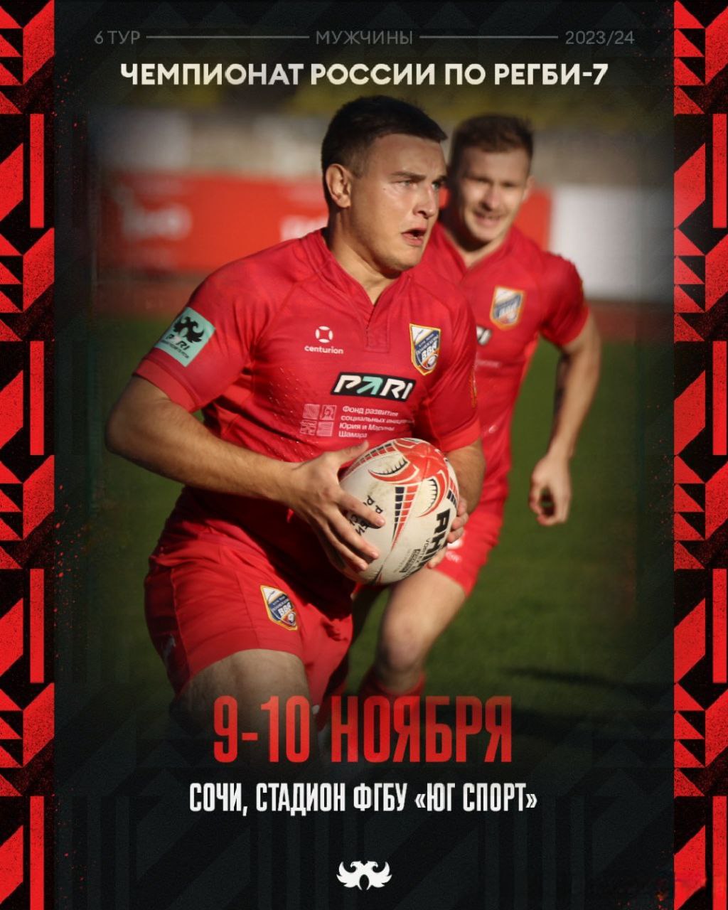 9 и 10 ноября в г. Сочи на стадионе ФГБУ «Юг Спорт» состоится заключительный, 6 тур Чемпионата России по регби-7 среди мужских команд.