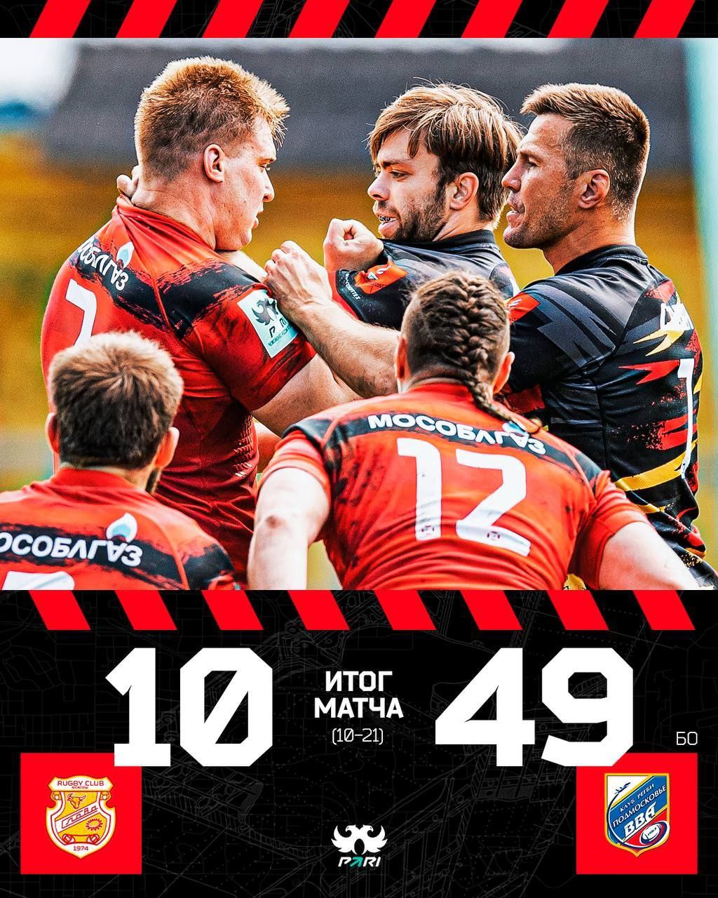 В прошедшее воскресенье состоялся матч против московской команды «Слава», который завершился со счётом 10 : 49 в пользу нашего клуба!