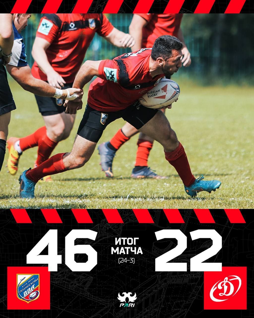 После перерыва мы быстро организовали еще одну попытку и с преимуществом в 28 очков ушли в оборону. «Динамо» пошло вперед и дважды отметилось в зачетке. Ребята быстро проснулись от такой наглости и Экстин со штрафного набрал ещё три очка, а следом дуплетом отличились Абдулкадиров и Сёмин.